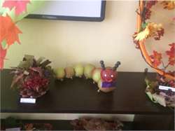 Гусеница, выполненная детьми и воспитателем из средней группы |