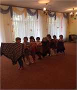 Девочки из подготовительной к школе группы танцуют танец с платками |