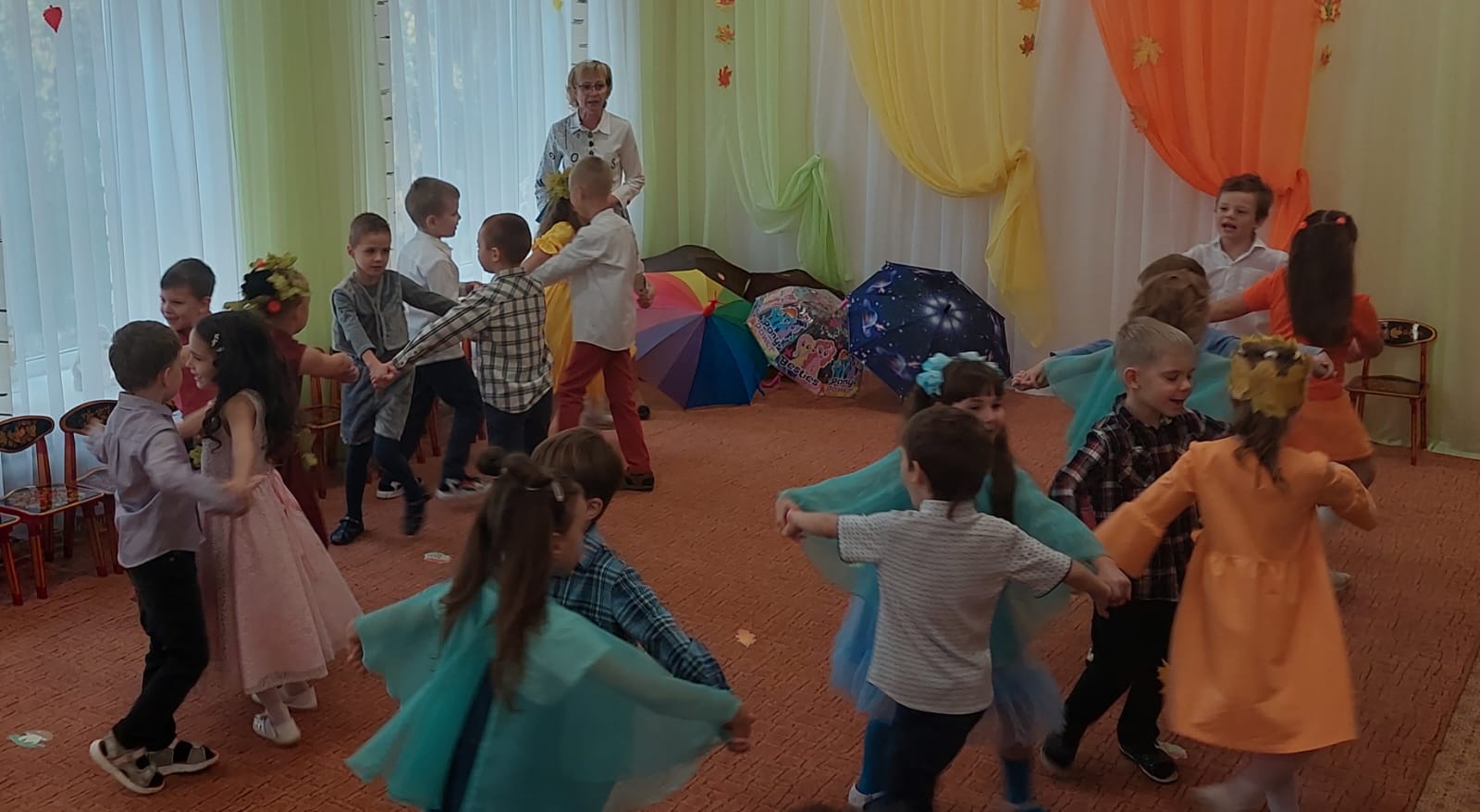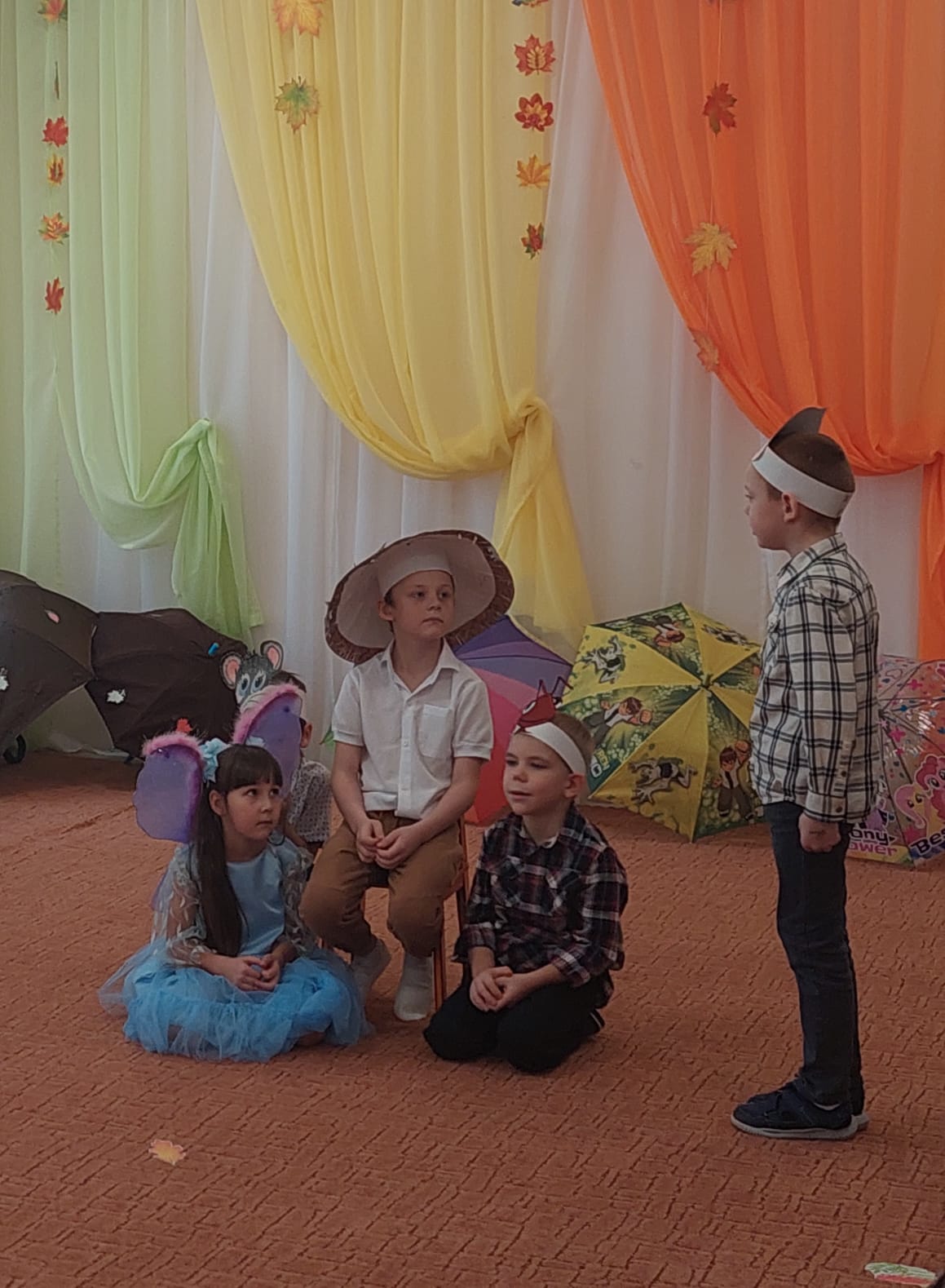Не только песни и танцы были сегодня на утреннике у детей подготовительной логопедической группы, но и постановка сказки! Невероятное приключение случилось у ребят прекрасным осенним днём — в гости приходило пугало, королева-осень.