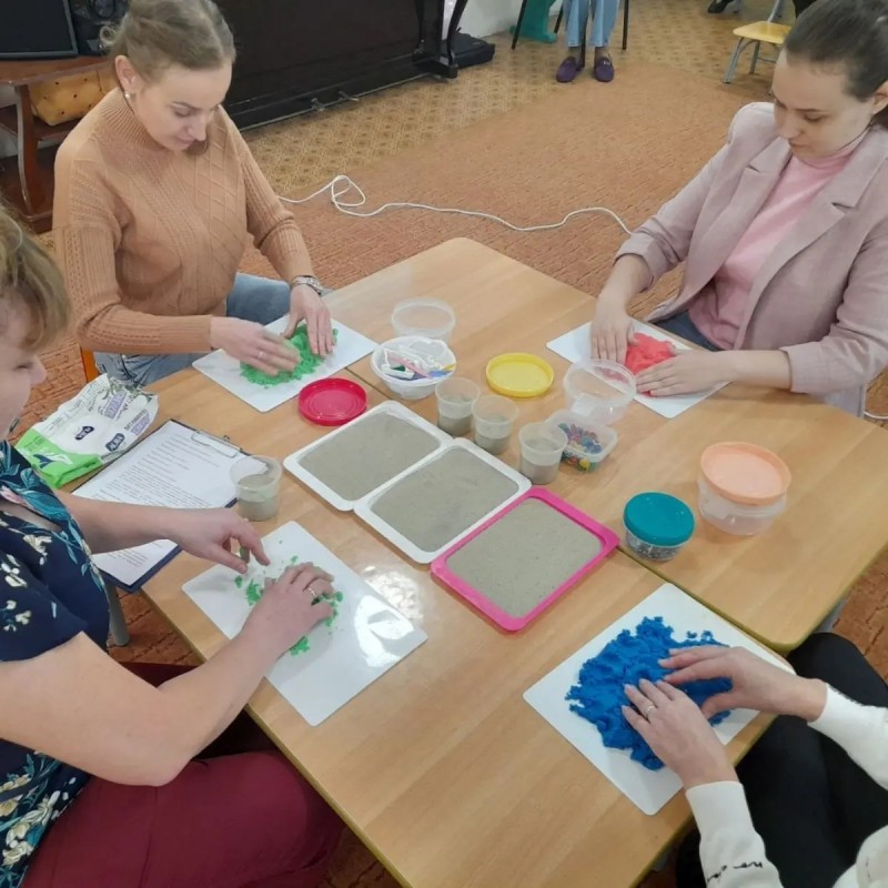 Своими новыми и нетрадиционными подходами к проведению занятий с дошкольниками поделились музыкальный работник Галина Викторовна Егорова, учитель-логопед Анастасия Игоревна Евтюшкина, Инна Валерьевна Глик, Анна Александровна Коробейко, Инна Николаевна Афанасьева и Елена Васильевна Силкина. Педагоги провели мастер-классы для своих коллег и рассказали о нетрадиционных техниках рисования, песочной терапии в работе с детьми, нестандартном использовании камушек на занятиях, поделились идеями в создании различных печатных игр и раздаточного материала. После завершения мероприятия кто-то подчеркнул для себя новые формы работы, а кто-то возобновил в своей памяти использованные ранее методы и приёмы работы с детьми дошкольного возраста.