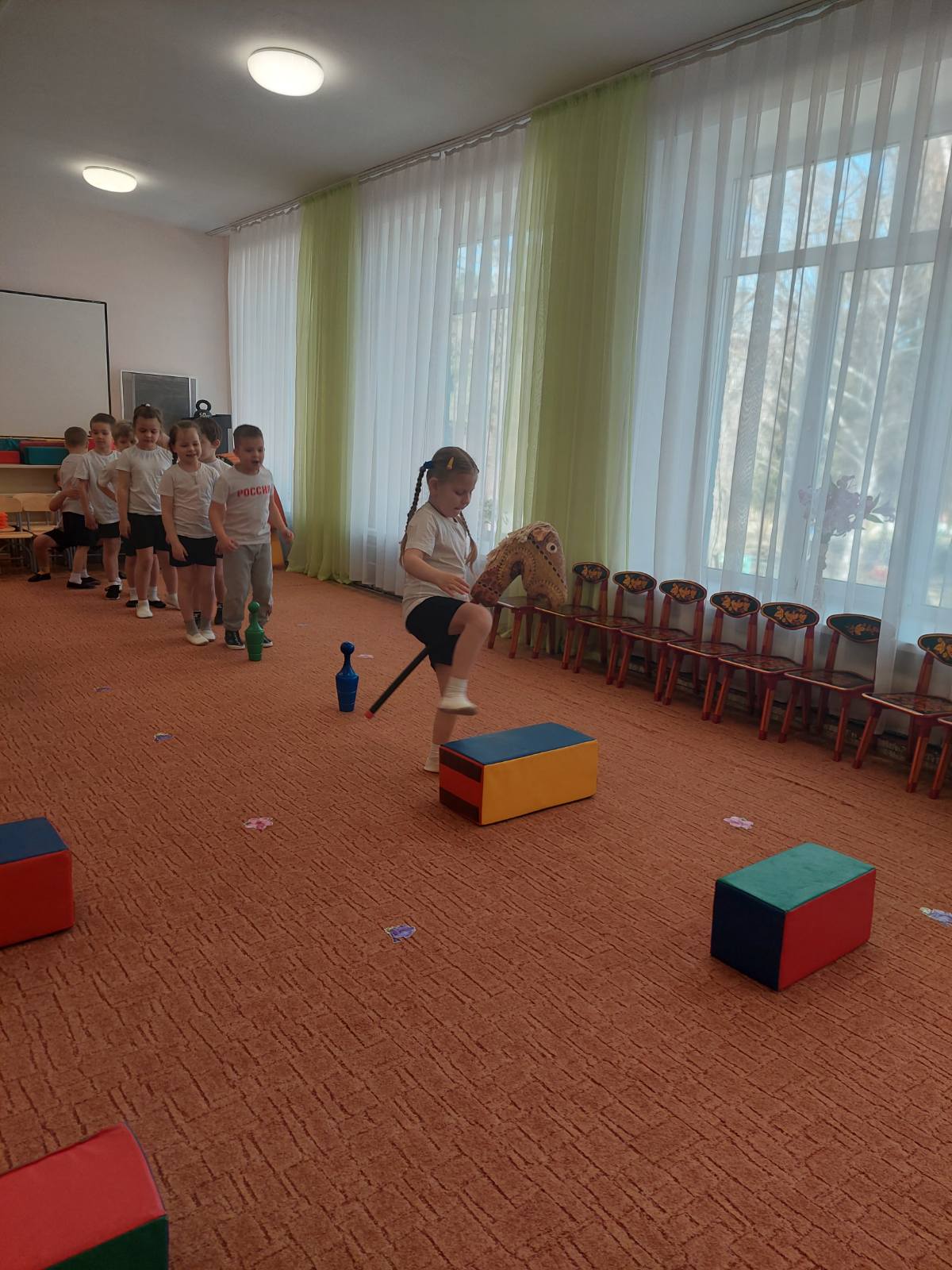 4 апреля ребята старшей группы вновь соревновались в интересных, необычных играх и эстафетах. Девочки и мальчики показали свою сплочённость, умение действовать командами, чтобы выполнять задания быстро и достигать положительных результатов. Внимание, ловкость и двигательная активность у детей развиты отлично!