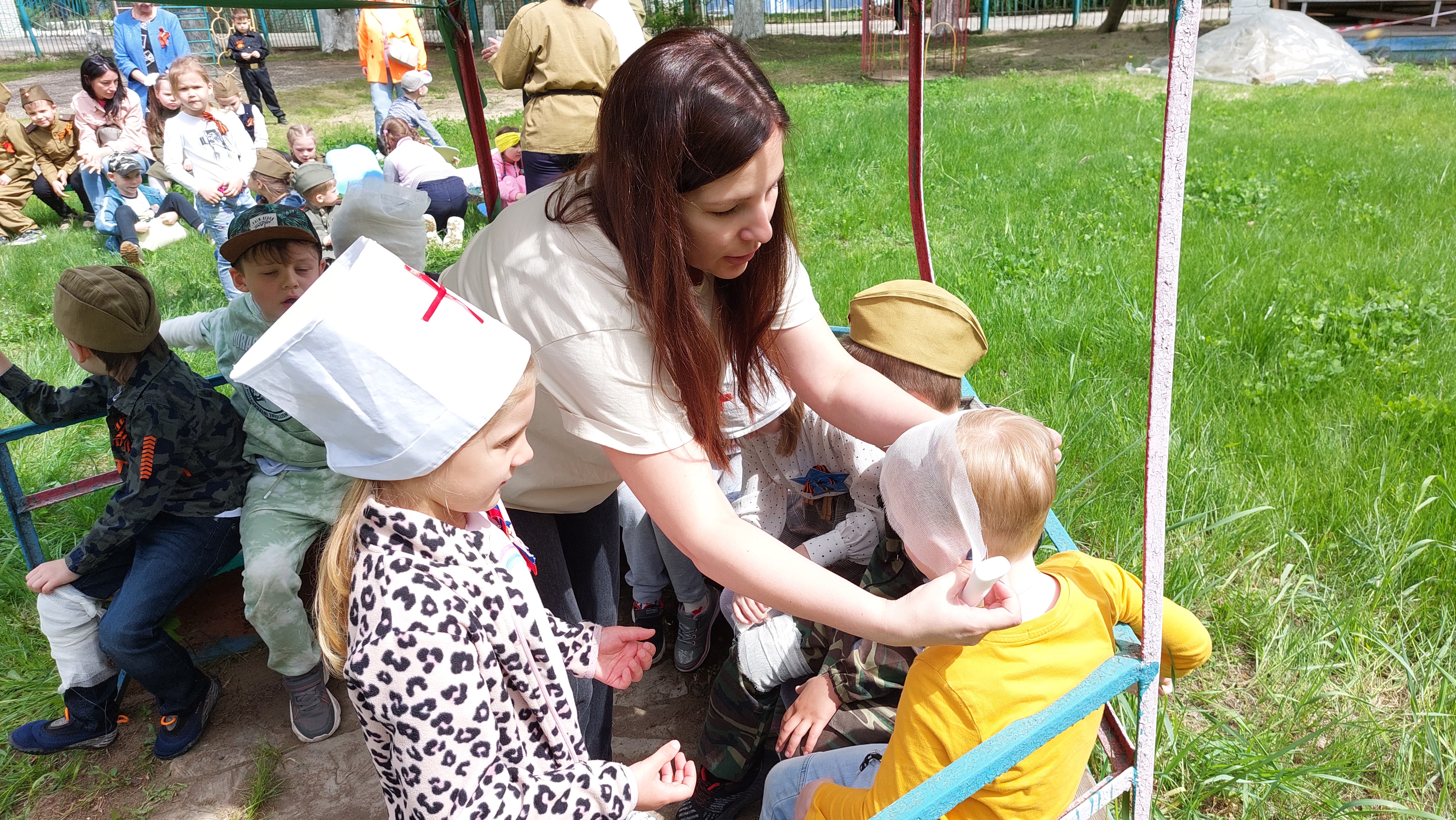 Взрослые и дети показали свои знания в исторических событиях, умении оказывать первую помощь раненым и собирали необходимые предметы для солдата, которые пригодятся на поле боя, а также проходили полосу препятствий и сбивали «танки» врагов, ходили по минному полю. Завершили квест общим сбором возле детского сада, где на свежем воздухе исполнили военные песни и поздравили друг друга с наступающим праздником Победы!