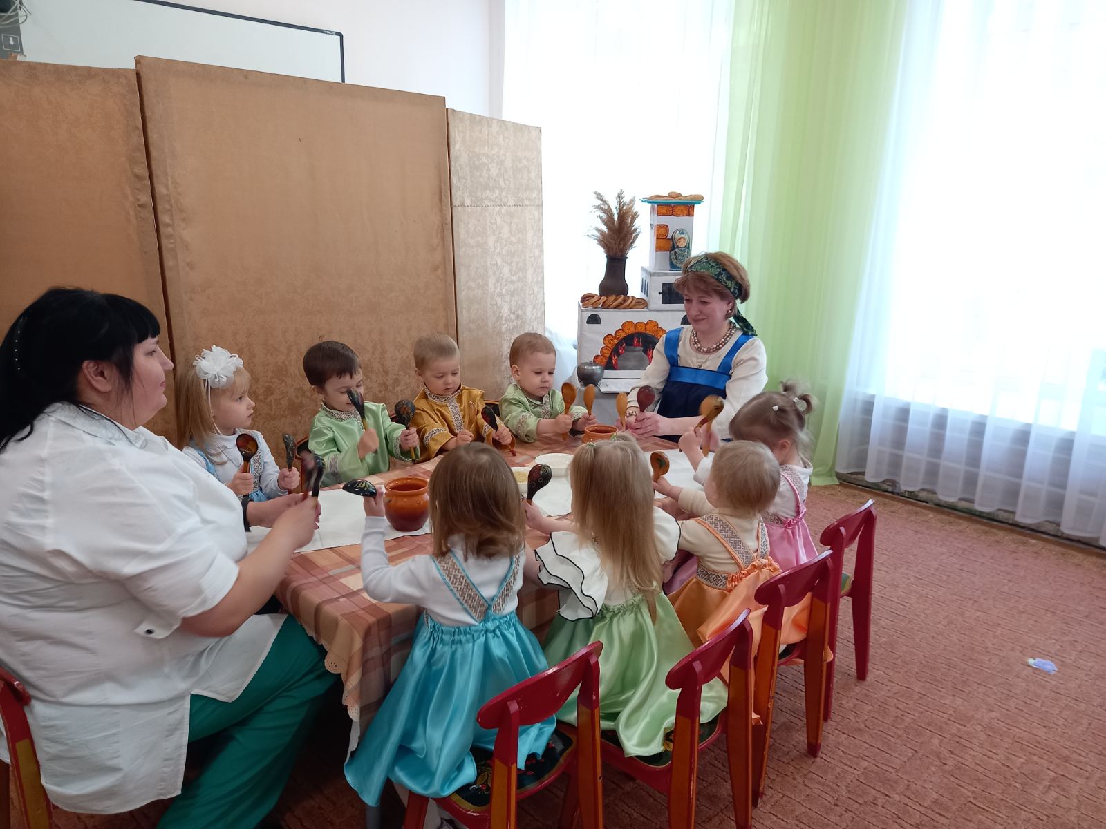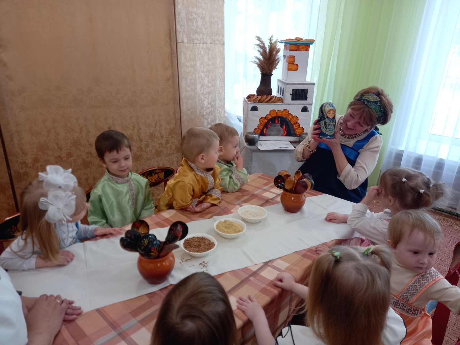 Как важно сохранять и чтить обычаи и традиции нашего народа, не забывать его прошлое. Сегодня такая возможность предоставилась самым младшим нашим воспитанникам. Воспитатели и музыкальный руководитель сделали этот праздник настолько колоритным и атмосферным, что и дети и взрослые прониклись глубиной, большим уважением к песням, играм и традиционной пище — каше! Ребята собрались за большим столом возле русской печи, в руках были деревянные ложки, а в центре стояла аппетитная каша«Дружба». Малыши вспомнили потешки, под русские-народные песни водили хороводы, перебирали зёрнышки, рассказывали стихи о каше и других блюдах. Праздник удался на славу!