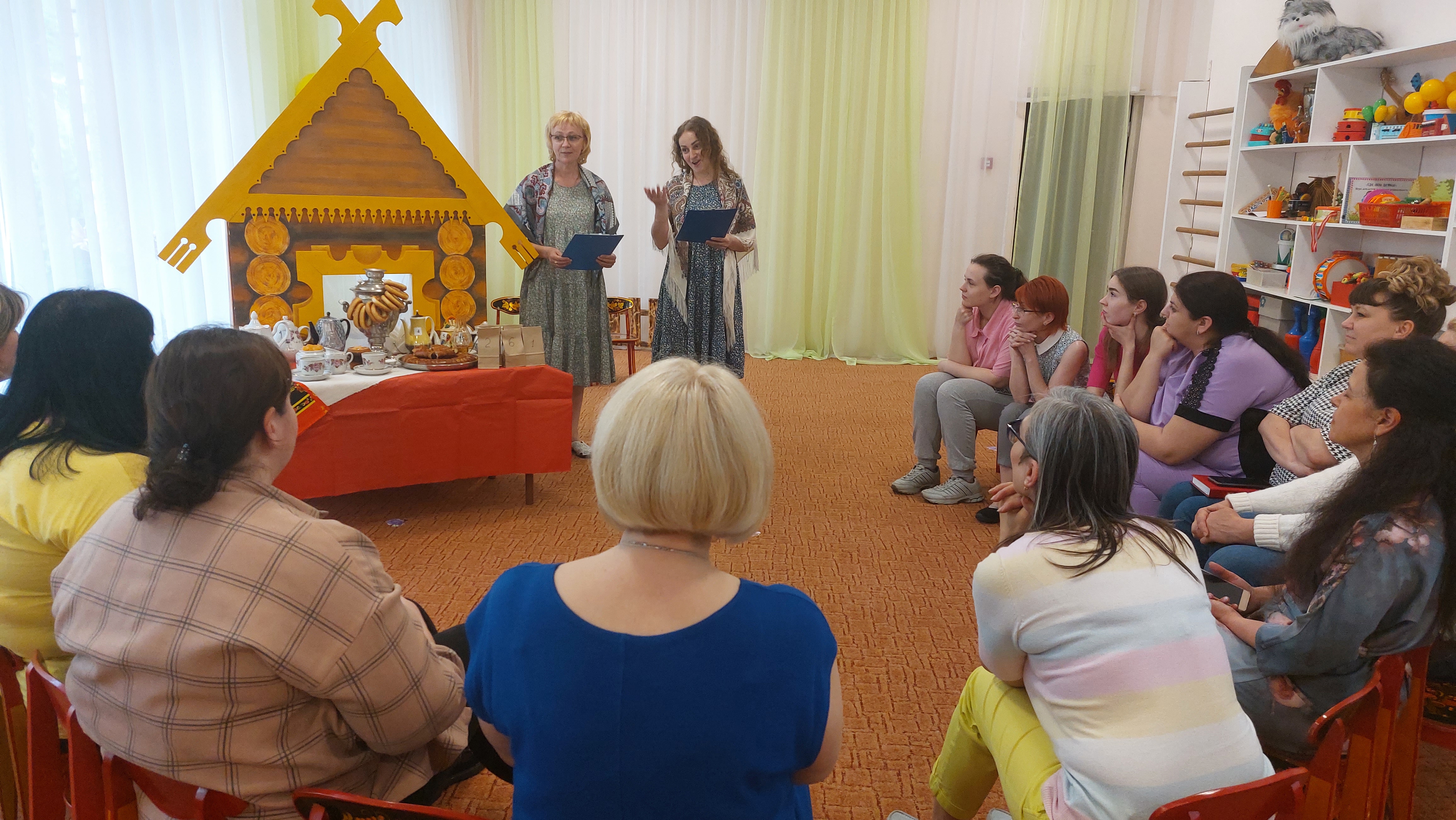 Инна Валерьевна и Мария Геннадьевна создали атмосферу уюта и познакомили с традициями чаепития — «Традиции мы соблюдаем — на чашку чая приглашаем». Педагоги рассказали об обычаях принятия гостей, значимости чая и угощений, предложили дегустацию чая с полезными травами. Данная методика знакомства с народными традициями — отличный пример организации родительских собраний и праздничных тематических развлечений с детьми. В заключении педагоги подвели итоги учебного года и наметили план работы на предстоящий.