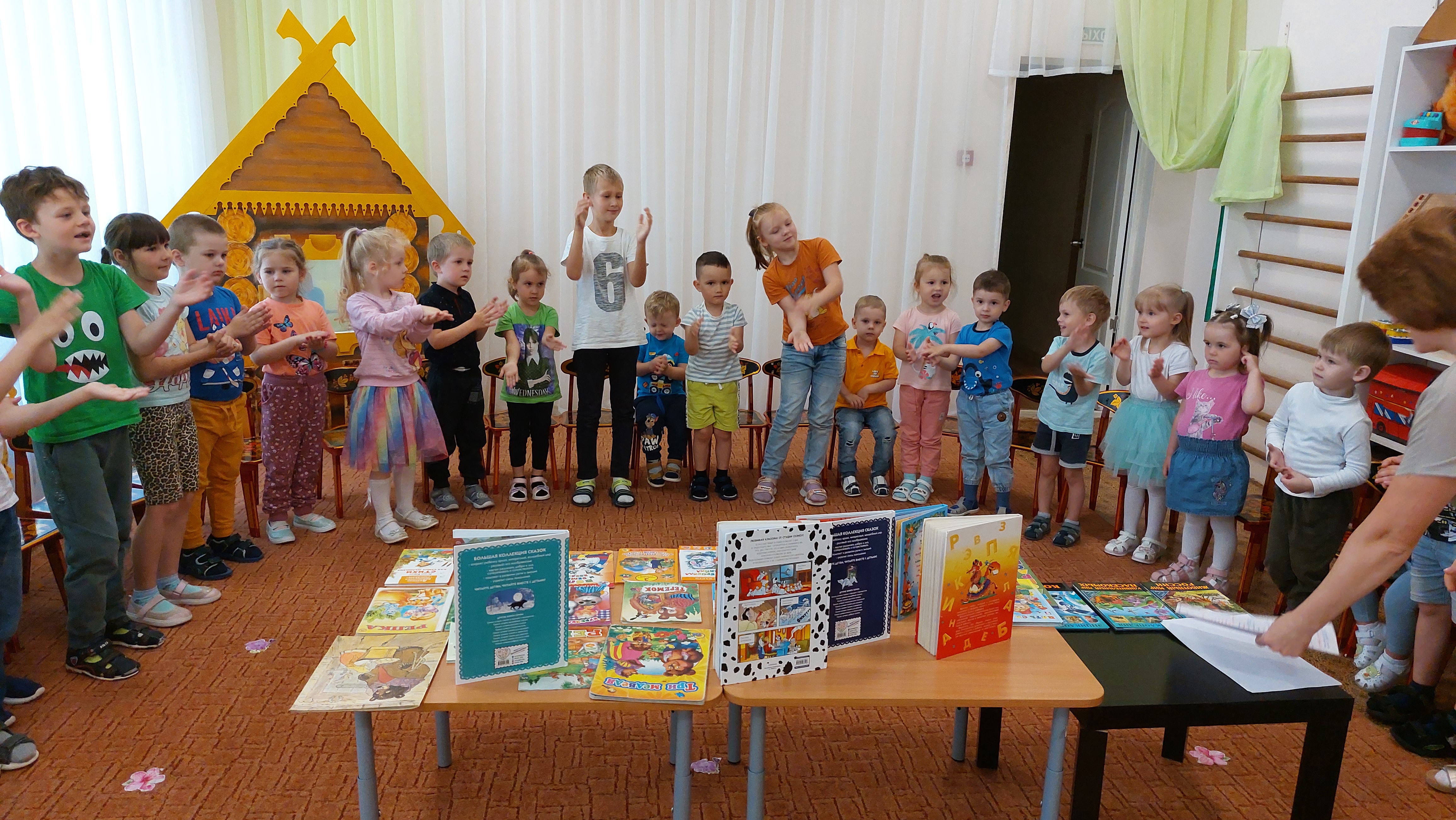 В книгах мы можем найти ответы на любые вопросы, сюжет сказки нас может унести в прекрасный волшебный мир, через книги мы знакомимся с другими странами, людьми… Да что только нельзя сделать с помощью них! Как говорил один учёный — «Книга – это лекарство для души, и кладовая наук, и источник мудрости.» Ведь действительно, так и есть. Вот и сегодня ребята всех групп сегодня погрузились в удивительный мир книг. Володина Ольга Викторовна читала поучительные произведения о книгах, загадывала загадки, проводила интересные игры-разминки, познакомила с видами книжных изданий и их особенностях. Ребята рассказали о своих любимых сказках, какие любят перечитывать с родителями, принесли в сад любимые книги и показали всем! По окончанию беседы дети составили инструкцию — как беречь книги и ухаживать за ними. Благодаря чтению человек развивается, учится мыслить, рассуждать, живёт. Хотелось бы, чтобы было как можно больше читающих детей и любящих книги!
